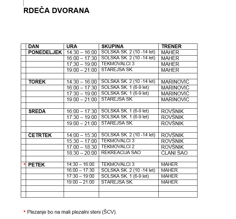 Z mesecem oktobrom se prično športno plezalni termini v Rdeči dvorani Velenje, po spodnjem razporedu...