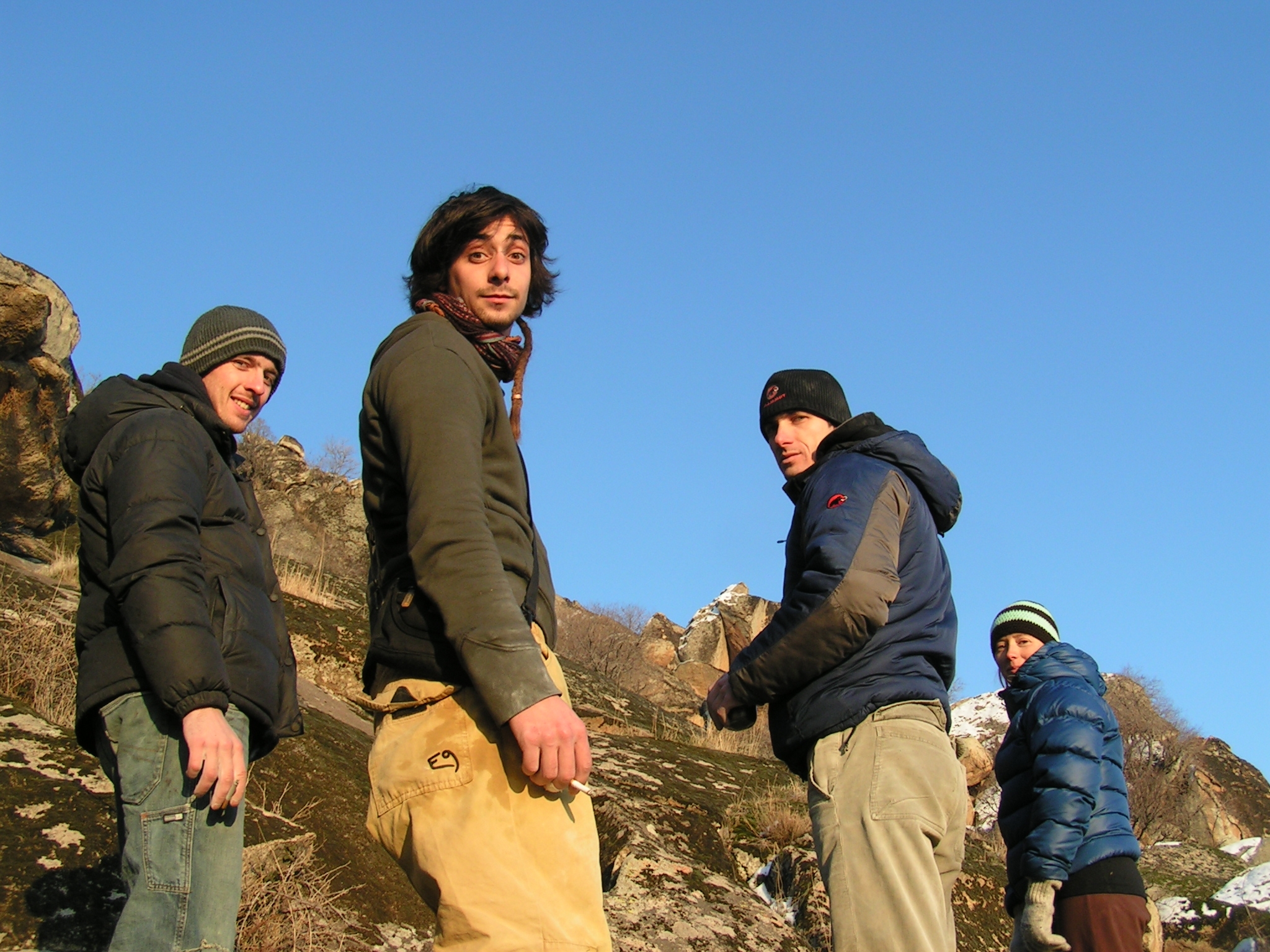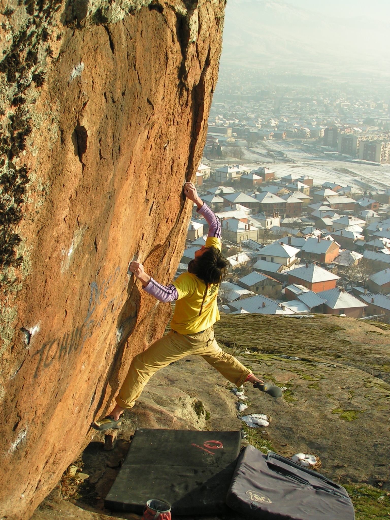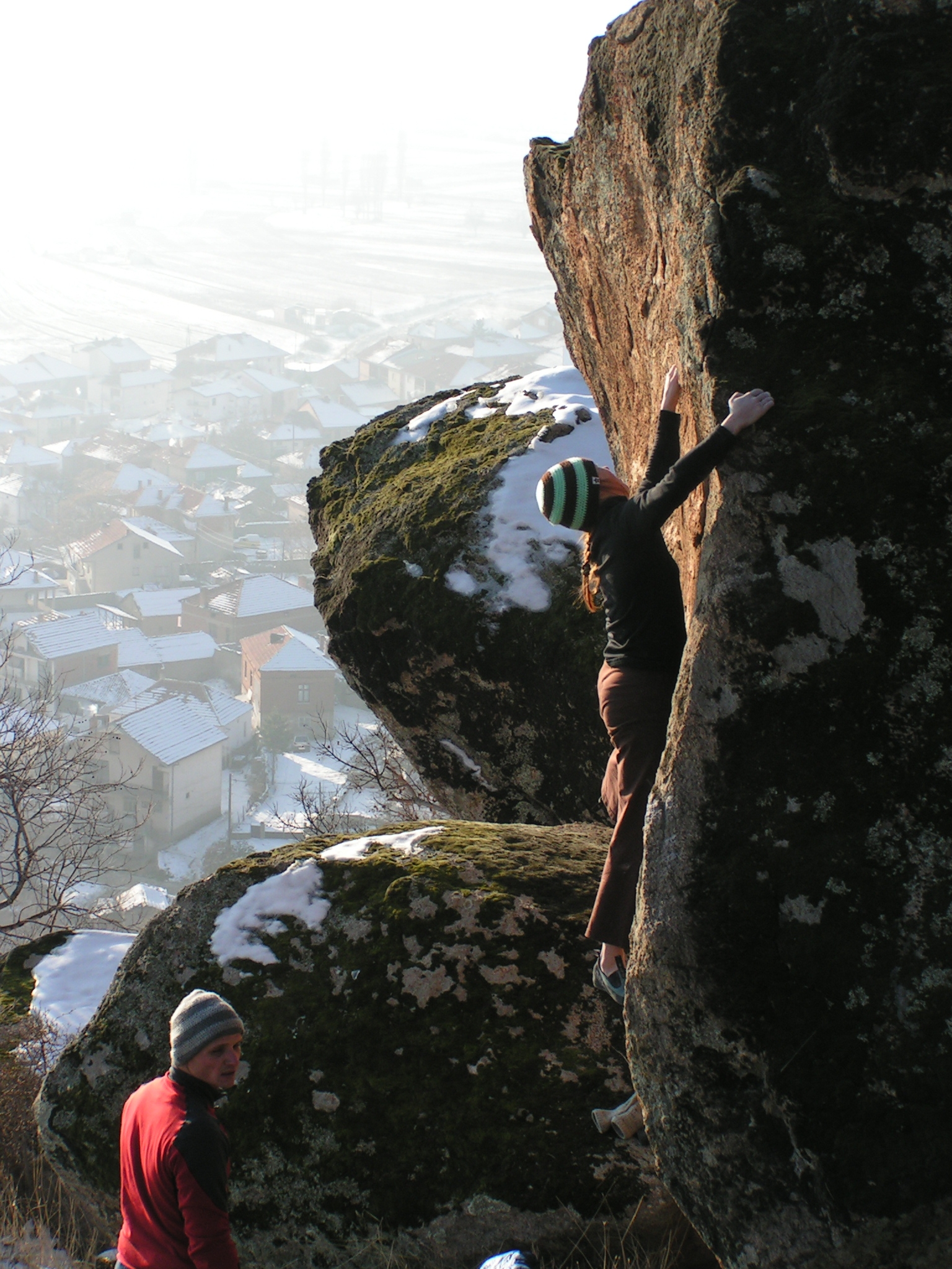 Glede vremena bi se dalo marsikaj pripomnit, sneg je res zadnje, kar si na balvanih želimo. Pa vendar, smo pionirji, šli smo v izvidnico in smo presenečeni. Pozitivno. Da je presenečenje še večje, smo povabljeni na sprejem pri županu, pojavimo se na televiziji, v časopisu, na internetu… skratka, cela atrakcija. Že res, da zaradi vremena zlezemo manj, kot smo na tihem pričakovali, zato pa pojemo in popijemo toliko več pleskavic in piva, občutimo in doživimo neverjetno prijaznost ljudi, se prepustimo tamkajšnjemu novoletnemu vzdušju, navežemo stike in razložimo ljudem tam doli, da imajo nekaj, kar si plezalci lahko samo želimo, in da lahko iz tega naredijo pravo plezalno meko. Skratka, bilo je ludo i nezaboravno.