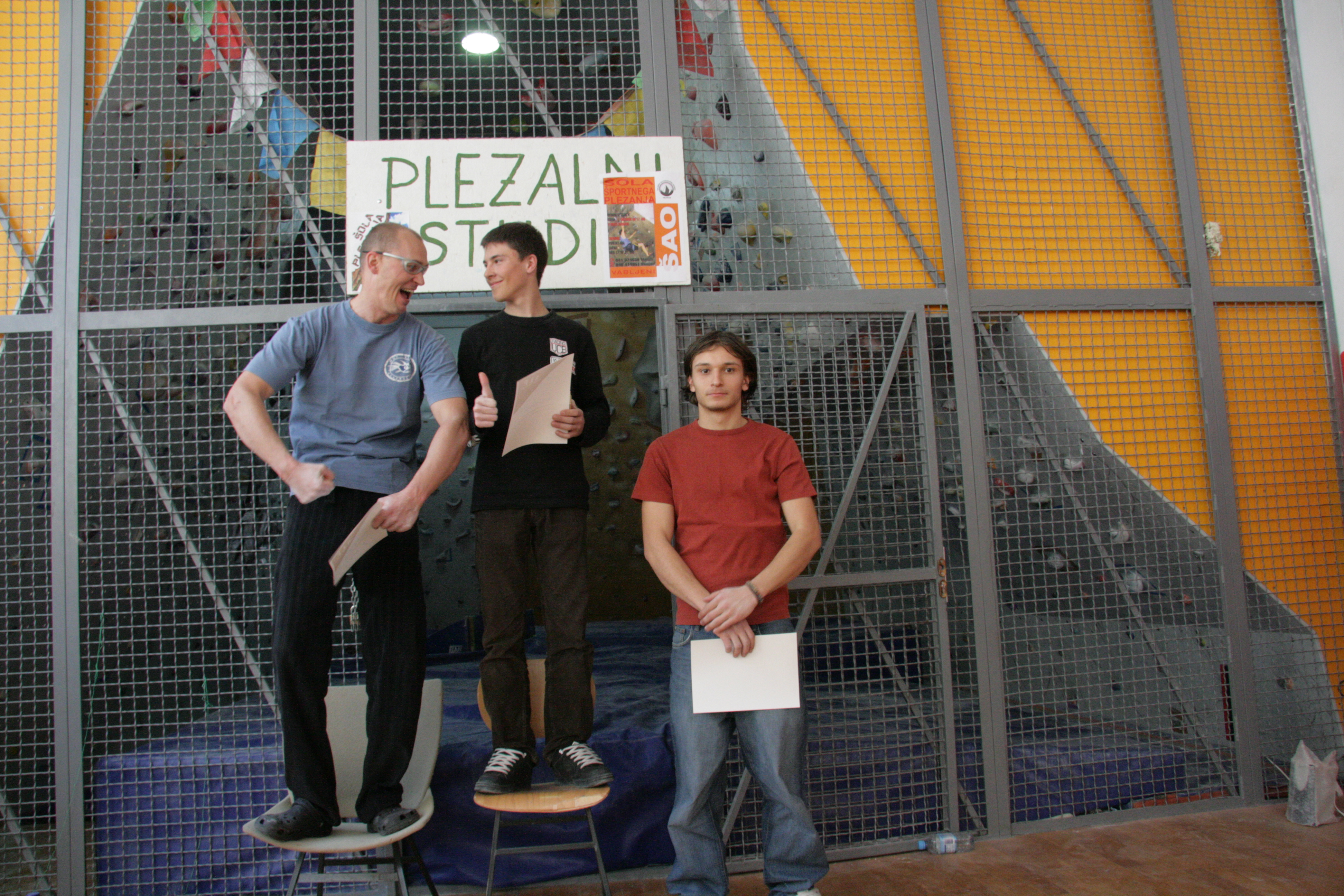 Ker stence niso tako velike, da bi lahko prebavile neomejeno število plezalcev, smo razpis naredili bolj po tihem, od ust do ust, od maila do maila. Skratka v Velenju se je zbralo 30 tekmovalcev, ki se je preizkusilo v 20 balvanih, na voljo so imeli cca. 4 ure, strli so vse, a nobeden vseh. Najuspešnejši pri fantih je bil Gregor Šeliga – Šeli, ki mu je uspelo kar v 19. balvanih, med dekleti pa sta se, po neodločenem izidu, v dodatnem balvanu pomerili Anja Šerbinek in Tamara Omerzel, slednji je ostalo več moči. Druženje se je, kot se spodobi za takšen dogodek, zavleklo pozno v noč.