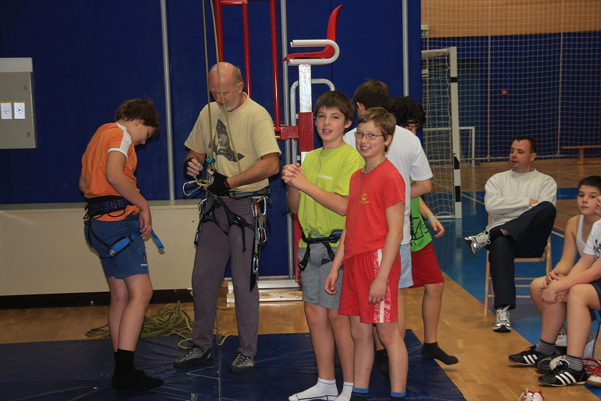 Teden dni, od devetega do trinajstega novembra 2009 smo člani Šaleškega AO skrbeli za varnost in napotke pri poizkusih plezanja osnovnošolske mladine na njihovi veliki plezalni steni. V šestih do osmih šolskih urah dnevno se je v tednu dni na plezalni steni zvrstilo veliko število učencev od najnižjih, pa do najvišjih, devetih razredov. Mlajši so bili v steni večinoma prvič, starejši pa so že vedeli kaj jih čaka. Večina si je plezanja zelo želela, nekateri so pokazali tudi svoj skriti talent.
