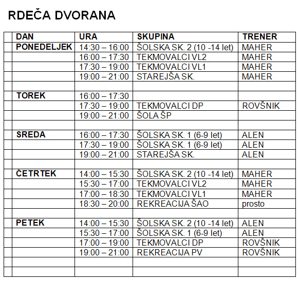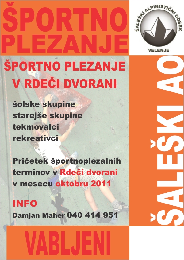 Z mesecem oktobrom se prično športno plezalni termini v Rdeči dvorani Velenje, po spodnjem razporedu.