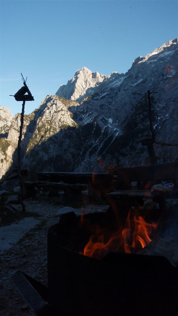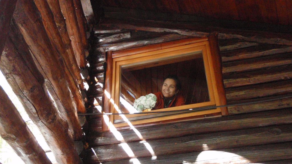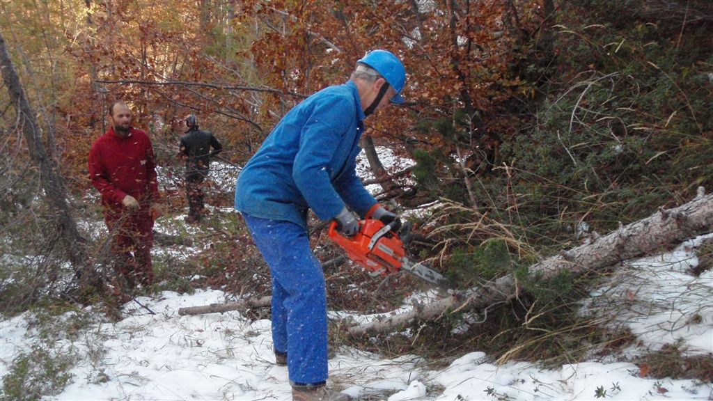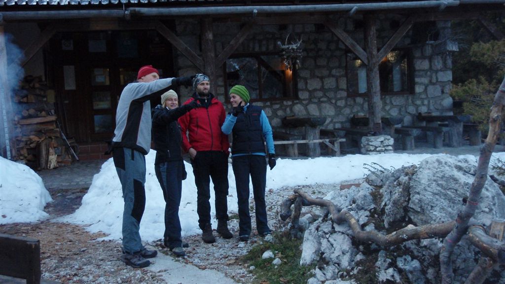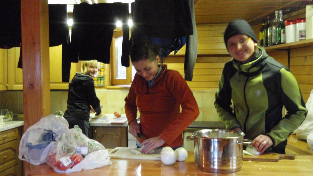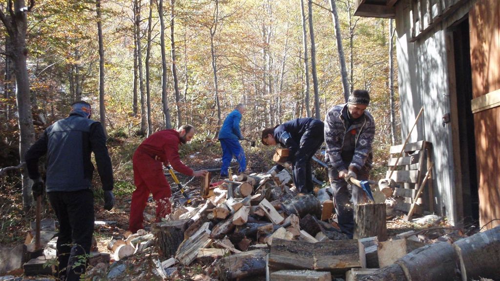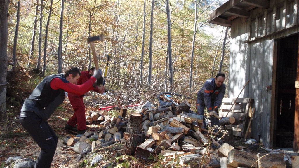Sicer nas je bilo le osem, ampak smo bili toliko bolj zagnani, nekateri celo preveč (a ne Stane:). Deklete so se lotile bajte- pa ne z žagami, ampak z metlo in krpo, kasneje še s kuhlo. Skupaj pa smo nanosili za dober kubik drv in jih seveda razcepljene zložili v barako. Detajli popisani v knjigi na bajti:)