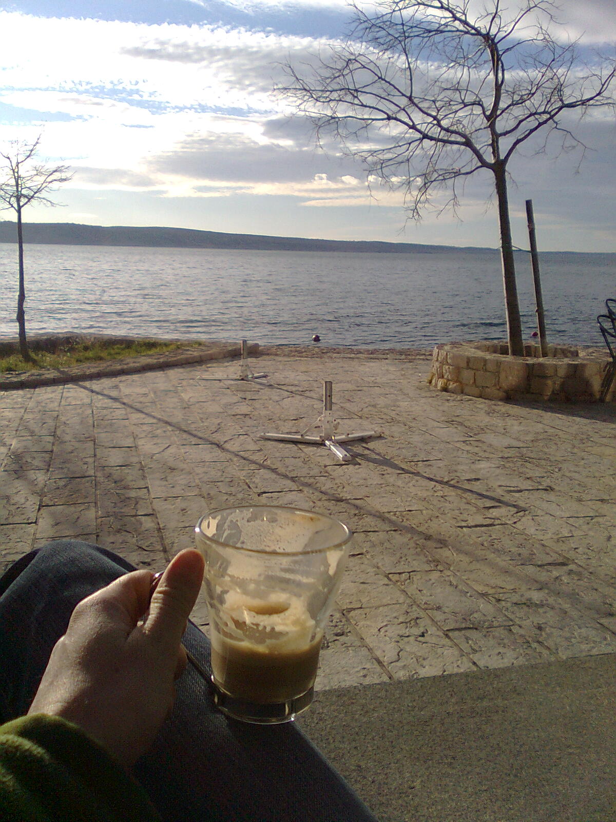 Naslednji dan se je veter k sreči umiril, vreme je bilo vrhunsko, vendar sva se odločila za pavzo. Predvsem najina psiha, moja še posebej, je bila pavze še kako potrebna. Sonček, kavica, morje, obala, idila.