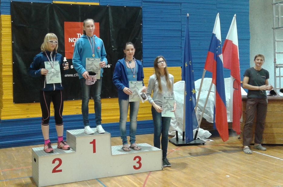 Nato so prišli na vrsto naši iskušenejši, v kategoriji st.deklic sta tekmovali Janja Garnbret in Tjaša Slemenšek. Janja je odplezala kvalifikacije dobro in se s 1.mestom uvrstila v finale. Pri Tjaši pa je bilo tokrat malo drugače, napačen ogled smeri je bil vzrok, da se plezanje ni najbolj posrečilo in tako se žal ni uvrstila v finale. Janja je v finalu plezala še bolje kot v kvalifikacijah in tako suvereno zadržala 1.mesto.