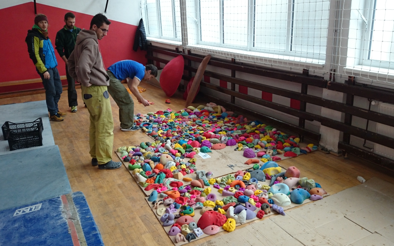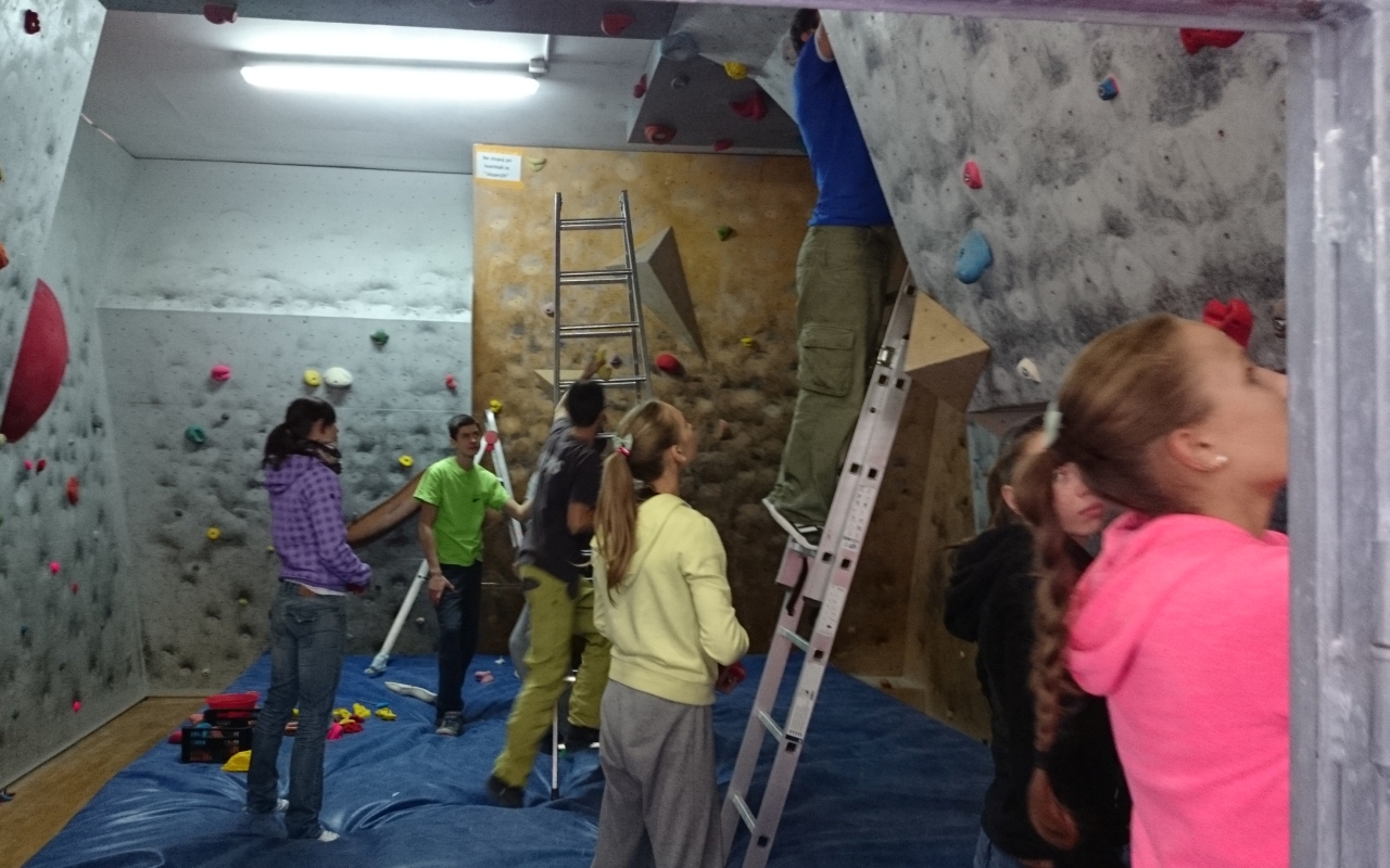 V soboto 10.1.2015 je na majhni plezalni steni v telovadnici ŠCV potekala delovna akcija, katere se je udeležilo zajetno število članov ŠAO. Vsi grifi so bili odstranjeni, očiščeni in ponovno nameščeni na steno, ki tako le še čaka na nove doze magnezija in potnih rok...