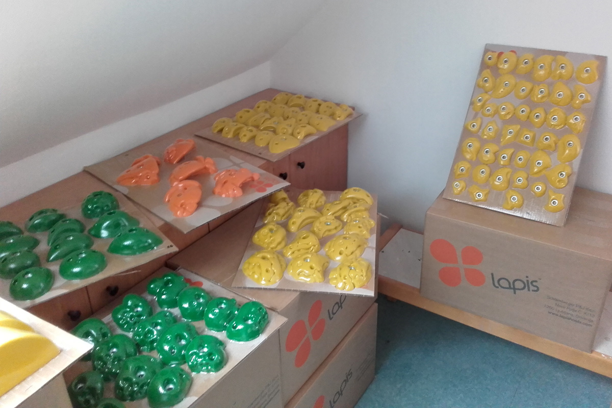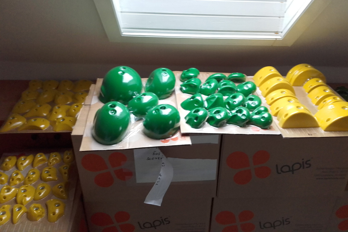 Evo. Dobili smo grife za novo steno v Šoštanju. Danes sma jih z Bistijem znosila v našo pisarno v vrtcu. Grifi so lepi in že komaj čakajo, da jih pošraufamo in začnemo ožemat.